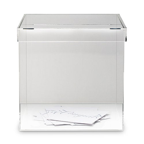 This contemporary acrylic box creates a sophisticated Wishing Well that will complement any color theme. Not only can it be used as a stylish container to collect wedding cards or "Wish Cards" but also makes an ideal box to store your precious wedding keepsakes following the big day. This acrylic box features a removable lid with mail slot and is suitable for engraved personalization.