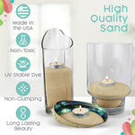 Common Uses for Our Colored Sand: Tan Colored Sand is suitable for reception table decoration, beach themed weddings, candle centerpieces, vase filler or home decor that needs a splash of color! It's also used in terrariums, floral designs, soil cover and sand art.