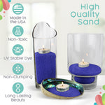 Common Uses for Our Colored Sand: Blue Colored Sand is suitable for reception table decoration, beach themed weddings, candle centerpieces, vase filler or home decor that needs a splash of color! It's also used in terrariums, floral designs, soil cover and sand art.