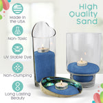 Common Uses for Our Colored Sand: Blue Colored Sand is suitable for reception table decoration, beach themed weddings, candle centerpieces, vase filler or home decor that needs a splash of color! It's also used in terrariums, floral designs, soil cover and sand art.