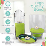 Common Uses for Our Colored Sand: Green Colored Sand is suitable for reception table decoration, beach themed weddings, candle centerpieces, vase filler or home decor that needs a splash of color! It's also used in terrariums, floral designs, soil cover and sand art.