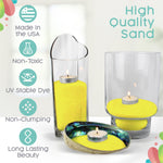 Common Uses for Our Colored Sand: Yellow Colored Sand is suitable for reception table decoration, beach themed weddings, candle centerpieces, vase filler or home decor that needs a splash of color! It's also used in terrariums, floral designs, soil cover and sand art.