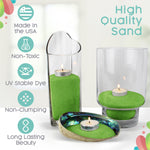 Common Uses for Our Colored Sand: Green Colored Sand is suitable for reception table decoration, beach themed weddings, candle centerpieces, vase filler or home decor that needs a splash of color! It's also used in terrariums, floral designs, soil cover and sand art.
