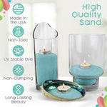 Common Uses for Our Colored Sand: Blue Colored Sand is suitable for reception table decoration, beach themed weddings, candle centerpieces, vase filler or home decor that needs a splash of color! It's also used in terrariums, floral designs, soil cover and sand art.
