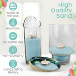 Common Uses for Our Colored Sand: Blue Colored Sand is suitable for reception table decoration, beach themed weddings, candle centerpieces, vase filler or home decor that needs a splash of color! It's also used in terrariums, floral designs, soil cover and sand art.