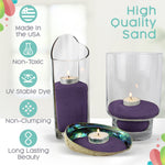 Common Uses for Our Colored Sand: Purple Colored Sand is suitable for reception table decoration, beach themed weddings, candle centerpieces, vase filler or home decor that needs a splash of color! It's also used in terrariums, floral designs, soil cover and sand art.