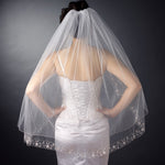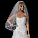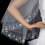 Beautiful two-layer fingertip veil with a scalloped light silver floral embroidery accented with sequins and tiny pearls.