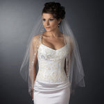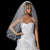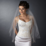 Bridal Wedding Double Layer Fingertip Length Veil white Silver Floral Embroidered Scalloped Pencil Edge