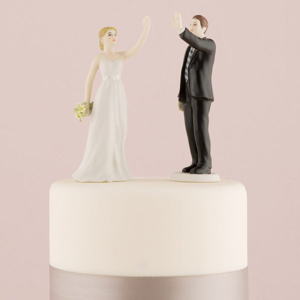 Celebrate marrying your best friend with this fun cake topper. Full of energy and anticipation this Bride and Groom are making the most out of their big day.