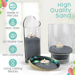 Common Uses for Our Colored Sand: Grey Colored Sand is suitable for reception table decoration, beach themed weddings, candle centerpieces, vase filler or home decor that needs a splash of color! It's also used in terrariums, floral designs, soil cover and sand art.